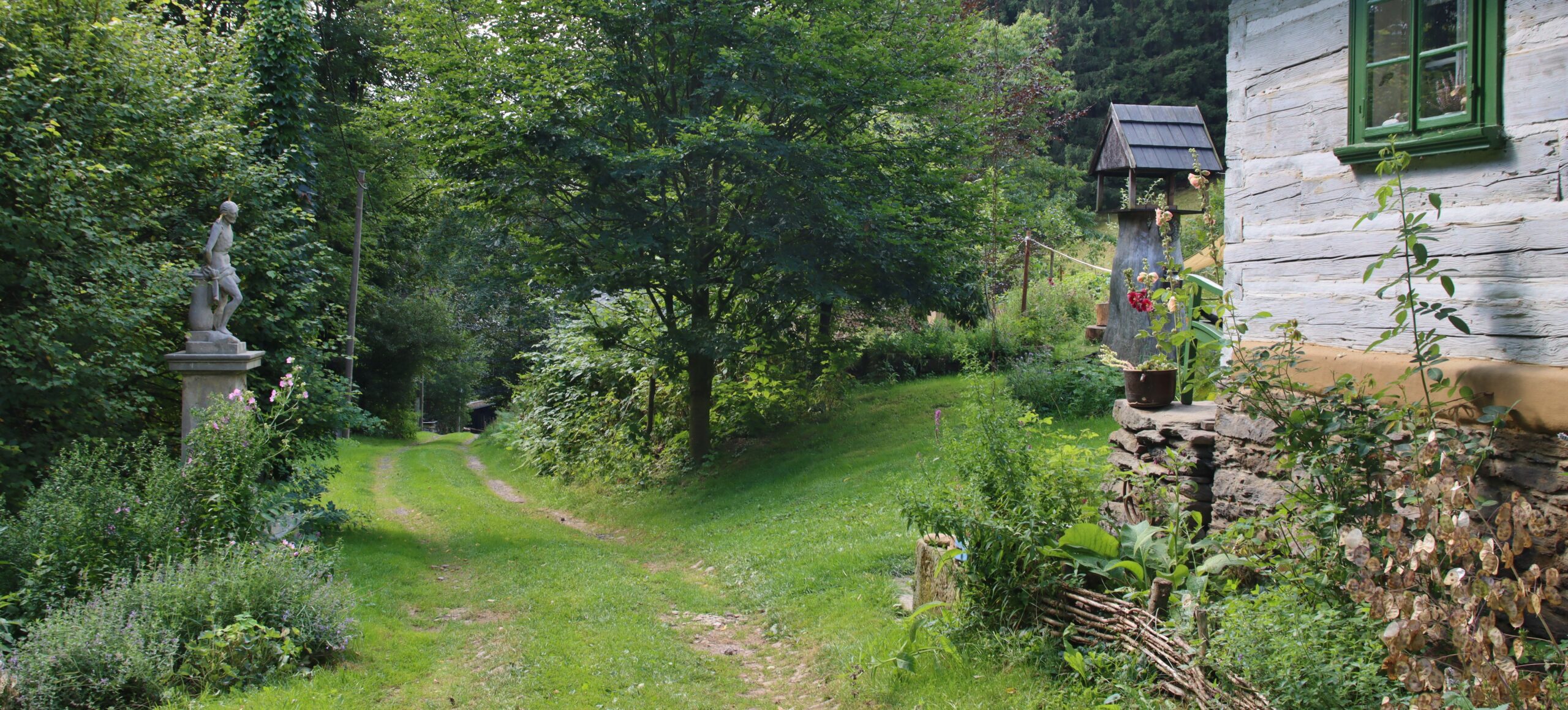 Julinčiným údolím zpět k soše Krista na okraji obce Nebeská Rybná