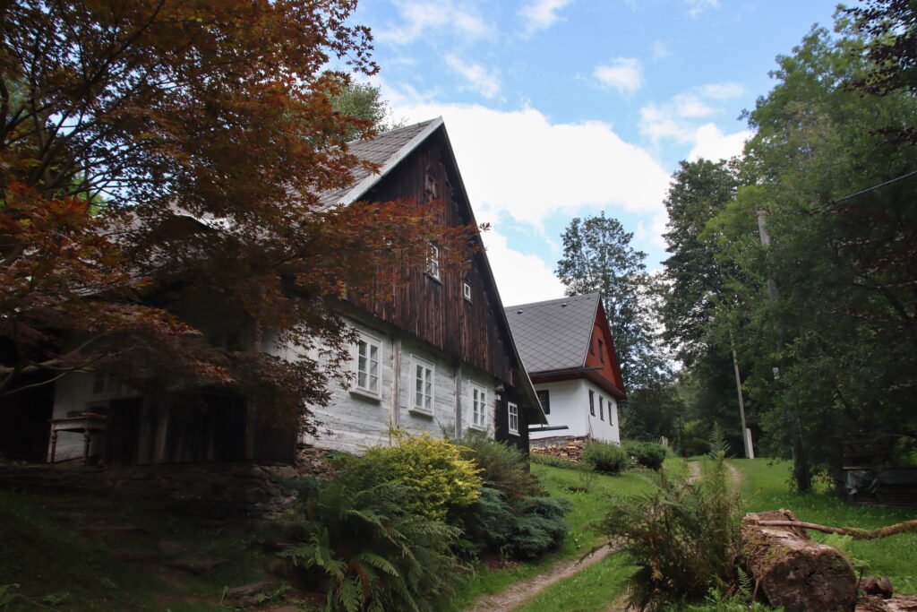 Hned za domem odbočte po pěšině vlevo, která vás přes pastvinu a lesík zavede zpět na silnici na okraji Říček v Orlických horách. Tady si určitě prohlédněte kostel Nejsvětější trojice a zároveň se v obci můžete i občerstvit před další cestou.